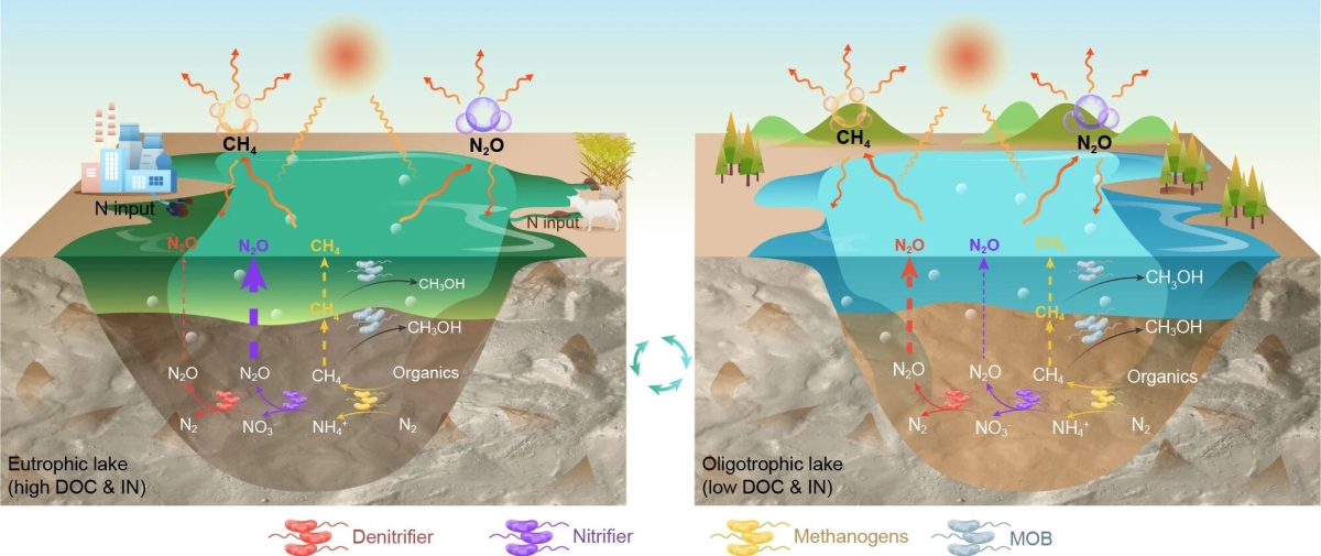 工业革命以来,人类活动导致大量活性氮输入水体生态系统,导致了严重的富营养化问题。湖泊是流域氮素去除的关键,同时也是全球温室气体甲烷(CH4)和氧化亚氮(N2O)的重要排放源,但湖泊营养水平对沉积物CH4和N2O产生的调控机制仍不清楚。