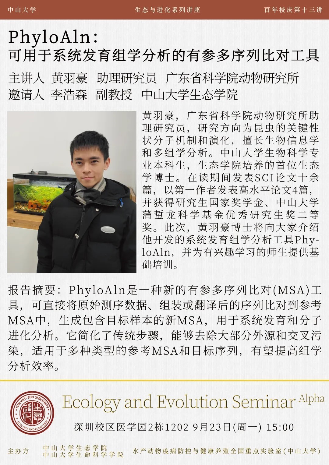 生态与进化系列讲座之百年校庆第十三讲:PhyloAln:可用于系统发育组学分析的有参多序列比对工具